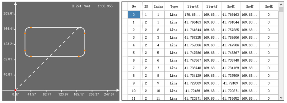 研華針對這一應(yīng)用難題,提供了專用于該場景的運(yùn)動控制卡PCI-1285T,運(yùn)用多軸旋轉(zhuǎn)刀尖跟隨算法,高速連續(xù)的將外觀輪廓軌跡的每個點(diǎn)精準(zhǔn)通過視覺檢測位置,同時發(fā)出同步位置脈沖配合線掃相機(jī)進(jìn)行連續(xù)采圖。