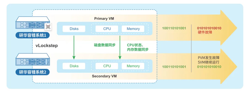 研華容錯(cuò)系統(tǒng)基于兩組冗余的硬件模組,通過對(duì)虛擬機(jī)的CPU狀態(tài)、內(nèi)存數(shù)據(jù)、磁盤數(shù)據(jù)的實(shí)時(shí)同步,保障了兄余單元雙活同步運(yùn)行。當(dāng)主機(jī)節(jié)點(diǎn)發(fā)生硬件故障時(shí),業(yè)務(wù)可無縫切換至備機(jī)節(jié)點(diǎn),磁盤和內(nèi)存數(shù)據(jù)不丟失,業(yè)務(wù)持續(xù)不間斷運(yùn)行。高可靠工業(yè)級(jí)平臺(tái)確保關(guān)鍵數(shù)據(jù)99.999%安全保護(hù)。