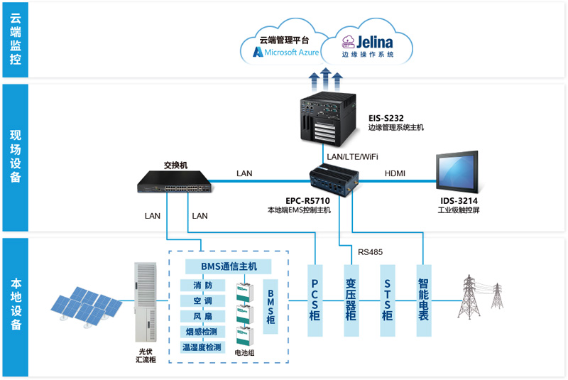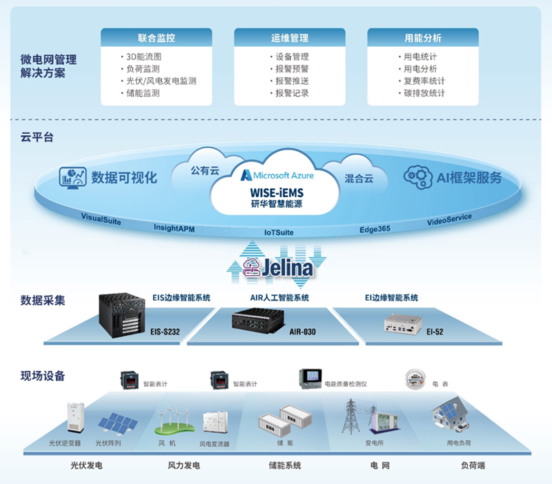 研華具備強(qiáng)大的軟硬整合能力,基于研華標(biāo)準(zhǔn)物聯(lián)網(wǎng)Jelina平臺(tái)進(jìn)一步延伸定制了適用于新能源行業(yè)的能源Jelina方案,該方案能幫助客戶高效部署,實(shí)時(shí)云端管理設(shè)備狀態(tài),涵蓋了災(zāi)難恢復(fù)、遠(yuǎn)程監(jiān)控、無人值守等功能,幫助解決行業(yè)痛點(diǎn),確保儲(chǔ)能系統(tǒng)長期穩(wěn)定運(yùn)行。此外,作為微軟合作伙伴,研華提供靈活安全的Azure云服務(wù),幫助儲(chǔ)能邊緣端設(shè)備數(shù)據(jù)無縫上云,實(shí)現(xiàn)安全、敏捷、高可用、低時(shí)延、隱私保護(hù)的大數(shù)據(jù)和人工智能服務(wù)與應(yīng)用。