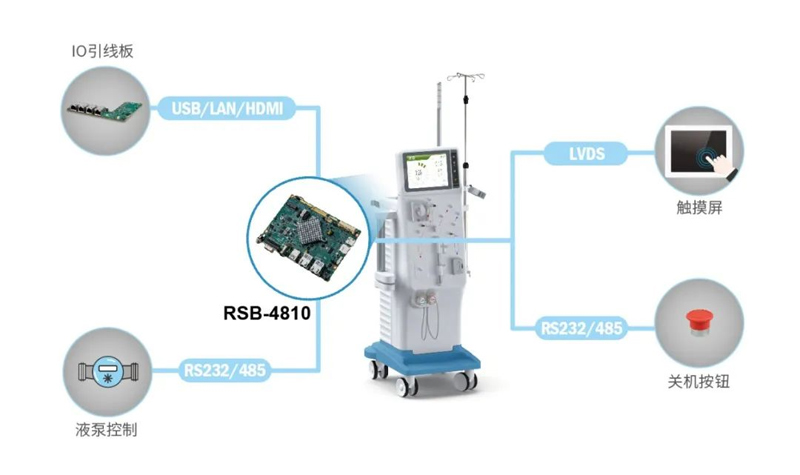研華RSB-4810是一款A(yù)rm-based的3.5“單板電腦,搭載Rockchip RK3568 芯片,具有高計(jì)算性能、低功耗、廣泛的I/O接口等特性,產(chǎn)品完美地滿足了血液透析機(jī)設(shè)備商對于可靠和長壽命主控單元、強(qiáng)大的技術(shù)支持、全面的技術(shù)文件和良好售后服務(wù)的需求。