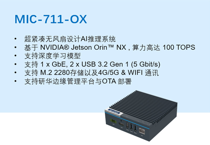 基于NVIDIA Jetson Orin?平臺MIC-711系列新品