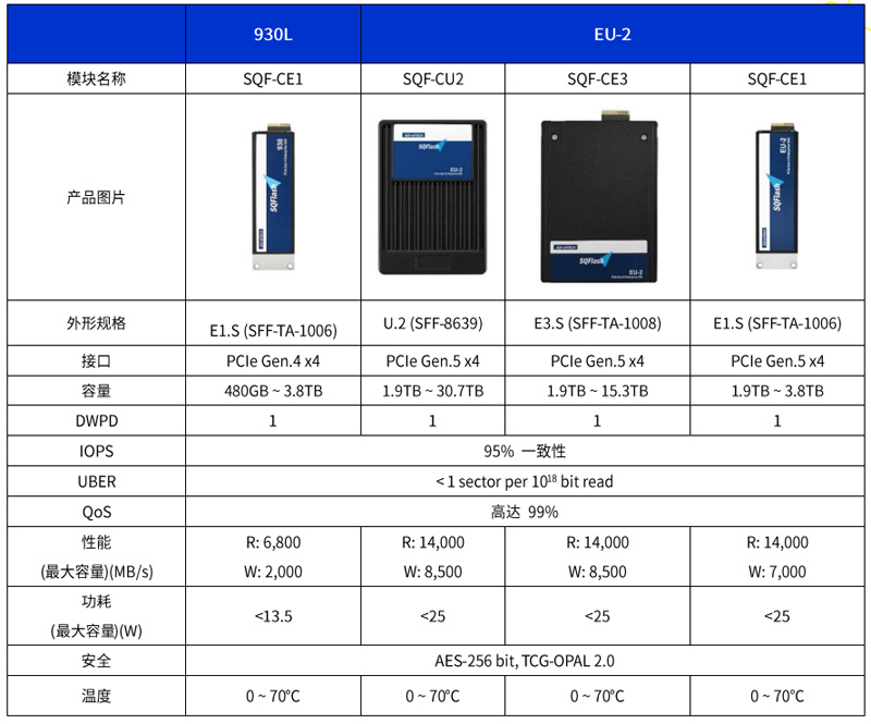 EDSFF SQFlash EU-2 U.2 & E3.S SSD是新一代高性能存儲解決方案,旨在滿足超大規(guī)模、企業(yè)和數據密集型應用的需求。
