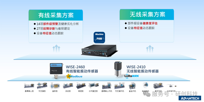 為實現對設備健康狀態的實時監控和預警,有效預防設備故障,研華PHM Edge AI設備健康診斷終端解決方案基于WISE-2400系列振動傳感器提供有線/無線兩種數據傳輸方案,將 PHM設備故障AI機理算法模型深度集成于研華UNO-247智能盒子中,針對泵、風機等設備提供智能預警、故障診斷與健康評估服務,可提前1-3個月識別潛在故障,減少非計劃停機。