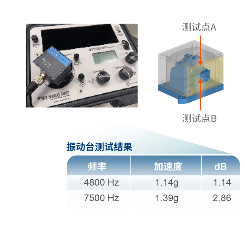 WISE-2460系列經過CAE模擬測試,以防止機械共振影響傳感器讀數。在振動臺上進行驗證,確??傉`差保持在35%以下,超過了行業標準的50%,且具有+/-3dB的容差。