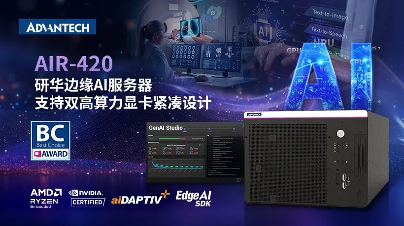 研華AIR-420邊緣AI應用服務器配備NVIDIA高階顯卡,尺寸輕巧卻具備強大計算效能,專為生成式AI、LLM推理與多模態應用而打造,能在邊緣端實時處理復雜模型,實現低延遲、高穩定的AI計算體驗。AIR-420應用服務器已廣泛應用于智能制造、醫療影像分析及LLM大語言模型生成等場域,協助用戶將AI從云端延伸至現場邊緣端,并于今年獲得BC Award (Best Choice Award)及臺灣精品獎的雙重肯定。